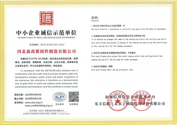 河北森虎緊固件制造有限公司成立于2011年,是建廠較早的緊固件企業(yè)。西臨京廣線,東臨京深高速,地理位置優(yōu)越,交通便利。 主要生產(chǎn):化學錨栓、機械錨栓、定型化學錨栓、高強度8.8級化學錨栓、自切底機械錨栓、車修壁虎,膨脹螺栓,植筋膠。 質(zhì)量方針:先進技術、科學管理、優(yōu)良品質(zhì)、用戶滿意; ...